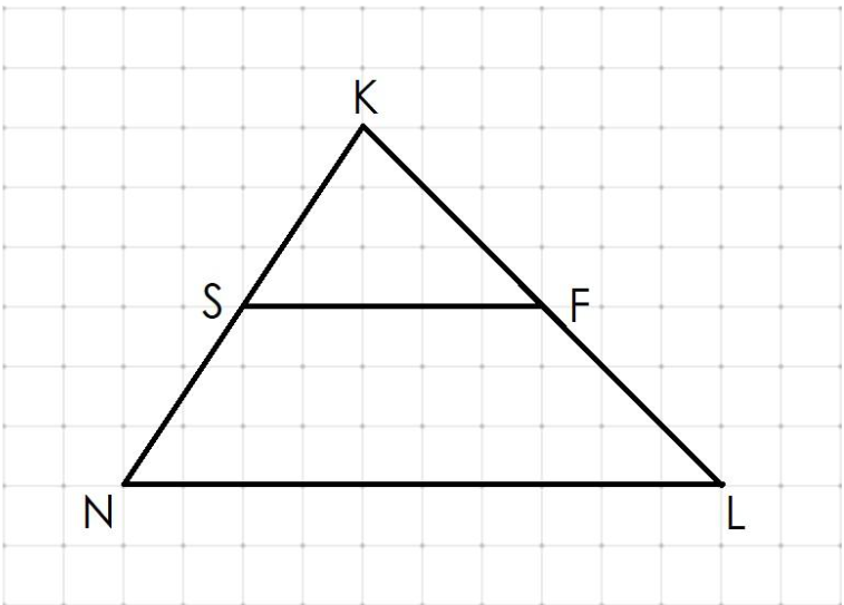 Задание: Площадь треугольника NKL равна 84, SF – средняя линия, параллельная стороне NL. Вычисли площадь трапеции NSFL.